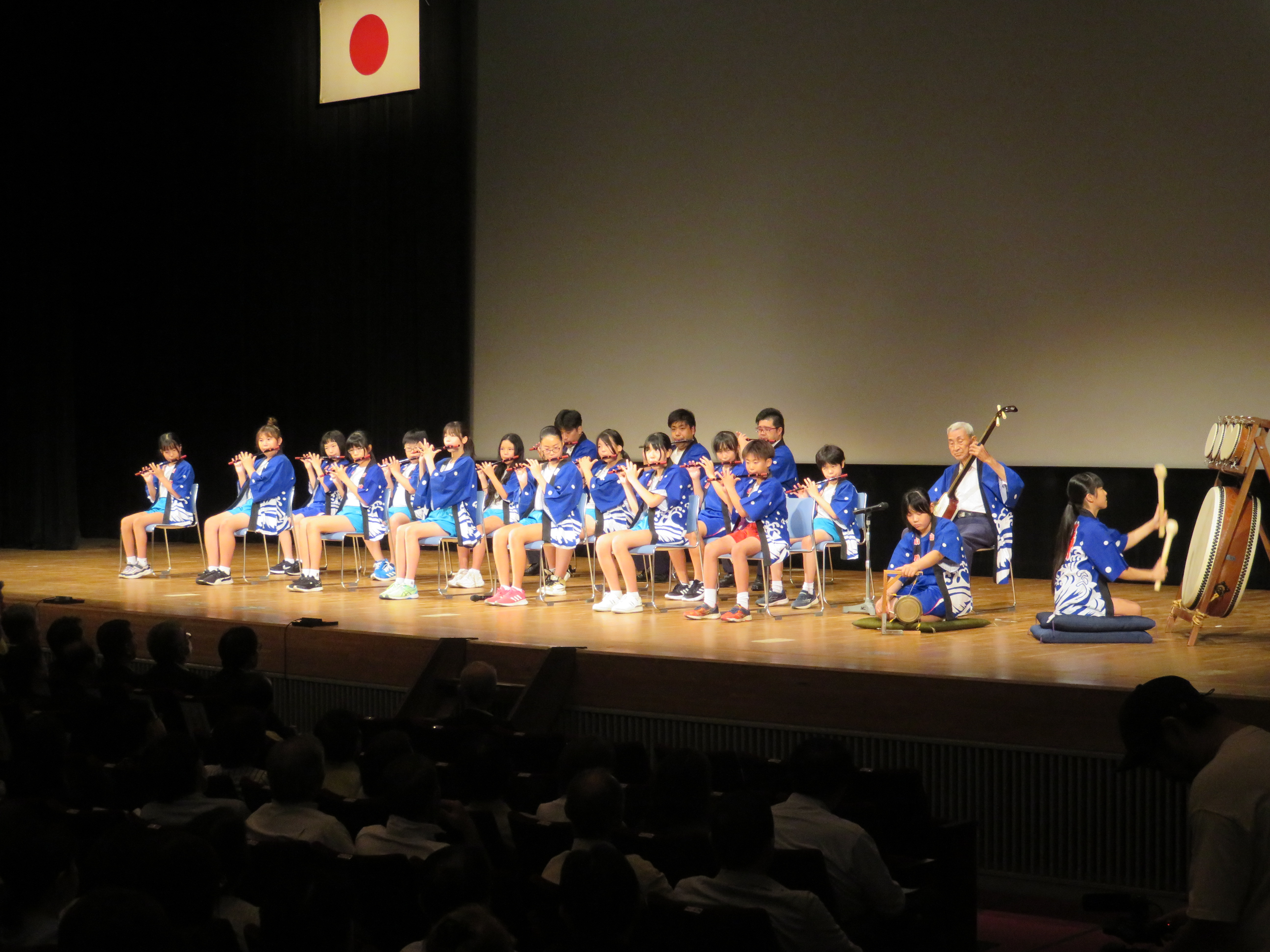 初めに、「新湊放生津小学校まっつんサークル」のメンバーが、放生津八幡宮祭「曳山囃子」を披露しました。